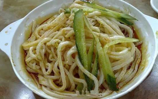 装修风格古朴别致,墙上挂满类似“长安八景”、“关中八景”的精细剪纸,还有顺口溜教你怎样写出biangbiang面几个大字(你会写么?),寓教于乐,吃碗凉皮还能涨姿势。米皮口感不错,能感觉到为了适应北京人民的口味,酱汁也做了适度改良,酸味和辣味没有原产地那么杀气腾腾,多了些米脂婆姨式的敦和与温柔。