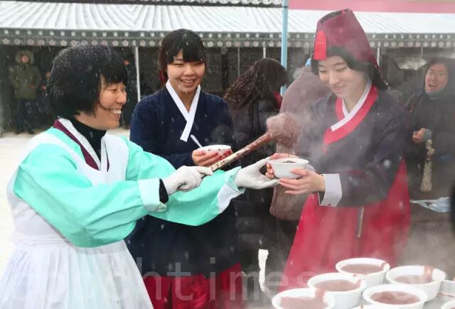 不过,韩国冬至的红豆粥在做法上有些不一样,里面要放上鸟蛋大小的元宵。相传冬至当天若吃下与自己年龄相当数量的小米团,来年便会万事如意。