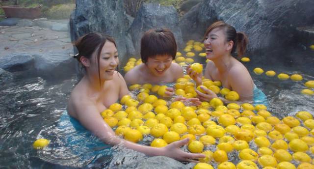 泡柚子澡(Yuzuyu) 之前,日本人会在柚子皮上划刀口,或者把柚子切半丢进浴缸里。果皮遇热会释放丰富的精油,那个香飘四溢呀~而且,果汁中的酸性成分也可以刺激皮肤促进血液循环,泡完澡,手脚冰冷的情况也少了~