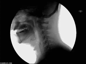 2.当你吃流食或者喝水的时候,它们就是这么通过你的喉咙的。