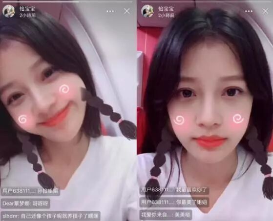 刚生完娃的孙怡都忍不住用起“嗯哼少女辫”特效开直播了,粉嫩嫩的样子哪里像生过孩子的妈妈,明明就还是个萌萌哒小姑娘。。