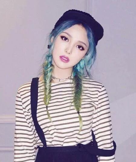 彩色的头发绝对能让你在街头回头率暴涨,马尾辫是按鱼骨辫的步骤来编发的,很是特别!