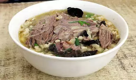 回坊斋牛羊肉泡馍据称是传承了百年的秘制配方,虽然具体配方不得而知,但无疑是用了羊骨老汤。所以汤汁稠糯,噙在口中似有不同于流质的错觉,可谓满颊生香。因为味正汤浓,所以此家提供的高汤也别具风味,食客一般都会要上不止一碗。食材的分量和质量也算上乘,酱辣片和糖蒜也是用心调制的,能看出精细;泡馍的色泽光亮,冬吃暖胃耐饥、夏吃发汗醒神,捞完干货会忍不住喝光汤渣。