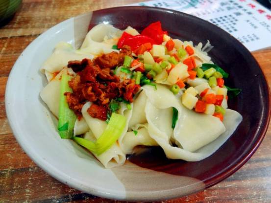 BIÁNGBIÁNG面是陕西关中特色传统风味面食,因为制作过程中有BIANG、BIANG的声音而得名,特指关中麦子磨成的面粉,通常手工拉成长宽厚的面条。