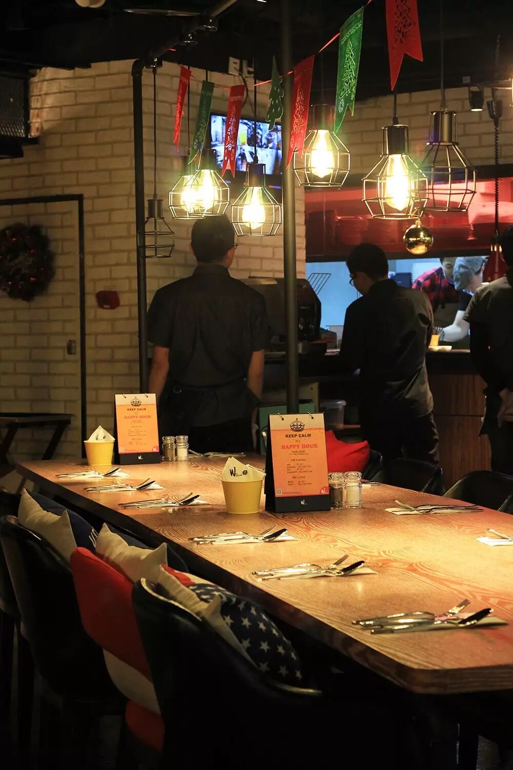 圣诞节的装饰已经被挂在了顶灯上,除了食物,饮品单和酒单的选择也是足有一本。刚进门就是吧台,不论是适宜聚餐的大长桌还是适合两人约会的小方桌,只要靠上椅背,就迫不及待等食物上桌。