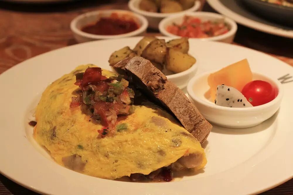 欧姆蕾是⼀款欧美很传统的早午餐。Win House 采⽤创新的墨西哥做法来?重新演绎这道传统早午餐。