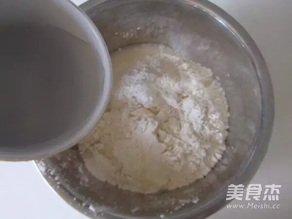 1.将温开水倒入面粉中