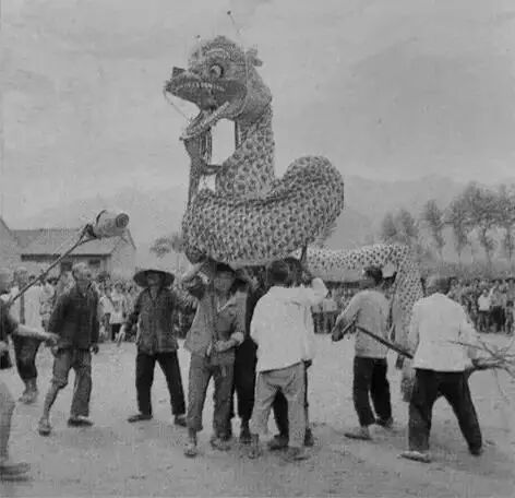 这是户县的村子里,正在舞龙的村民,那时候每逢节日,或者有什么喜庆的事情时,都会有舞龙的表演,周围围满了热闹的人群。