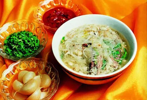 灌汤包顾名思义,它就是一种包子,但里面却是有汤的。一般为牛、羊肉馅。再配一碗香喷喷的八宝粥,齐活!