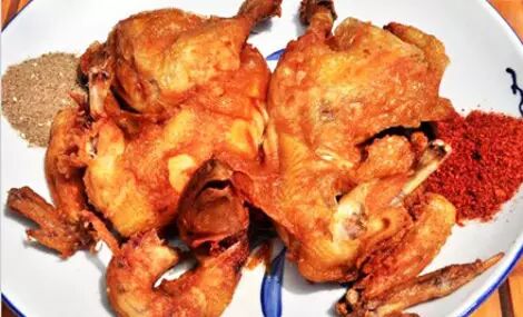 陕菜饮食源远流长,被誉为“长安首味”的“葫芦鸡”便是其中最完美的代表品种。葫芦鸡和香酥鸡挺像的,都是外焦里嫩,香喷喷的。盘子旁边放的是两种不同的蘸料,一个是麻辣的,一个是孜然的。