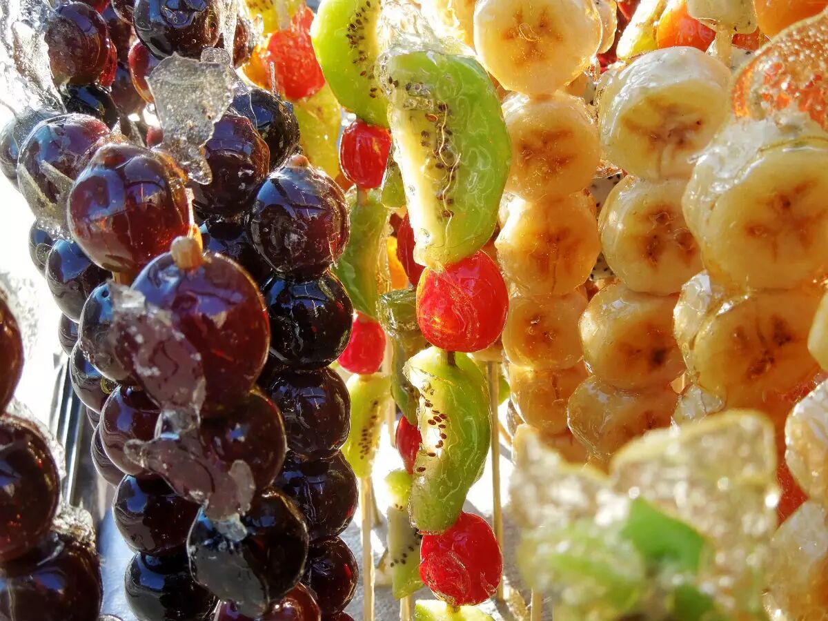 记忆中的冰糖葫芦是酸酸甜甜的,现在为了满足大家的口味~如今的冰糖葫芦什么样水果味的都有,这不,红红绿绿。