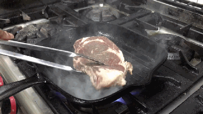 顶级食材的选取,安格斯牛肉,肉眼牛排,肉质鲜嫩,富有弹性,一块牛排足足250克到300克。完全不需要提前腌制,这样会很好的锁住牛肉的汁水,保持牛肉最原始的味道,只需要客人点餐后,腌制3-5分钟,再放入铁盘煎。
