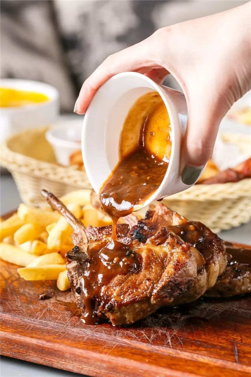 调入黑椒或红酒汁,二选一,味道更诱人,禁不住拿起一块,肉质鲜嫩有嚼劲,汁水四溢,满是留恋。