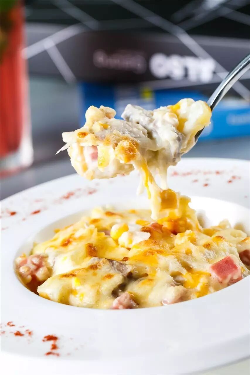 传统俄餐中响当当的一道菜,非常考验厨师的水平,将火煺、烤牛柳、鸡胸肉、蘑菇、玉米、土豆等食材,加入了奶油,与马苏里拉芝士和车达芝士一起焗烤,拉丝和浓郁感通通被发挥到最好的状态,长长的拉丝,浓郁的奶香味,散发着致命的诱惑!