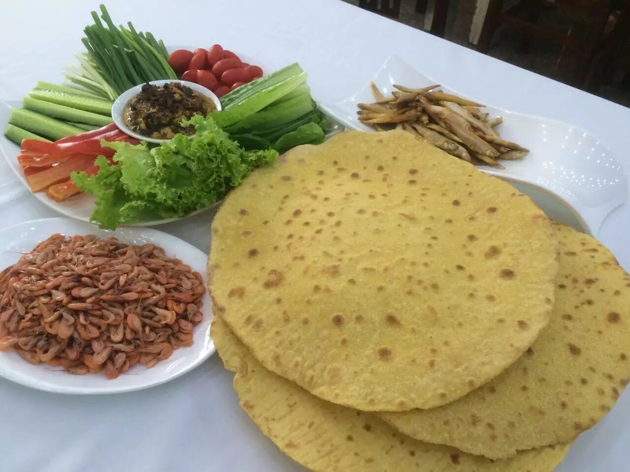 定兴特产,棒子面饼又称棒子面饽饽、玉米面饼,其主要原料是玉米(又名棒子)经过细致加工后,磨成的面粉。结合地方绿色食蔬以及锅包鱼、河虾等可卷食、生食,形成独具特色的一道主食。吃的时候一般掰下形状大小相似的两块扣在一起,中间抹上酱放上一些蔬菜或熟食等。香脆可口,营养健康。
