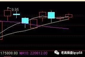 2、K线在5日线和10天线之间 5日线在10日线之上