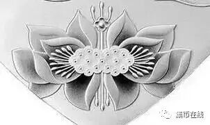 相比前两组“并蒂同心”金银币,今年这一组币美的更加肆意,也美的更加灵动。最让人觉得欣喜的就是在这套币上,传统的构图规则似乎并不是那么重要了,设计者更关注的是对于“并蒂同心”这个画面本身的生命关照。最大的变化就是加重了戏水鸳鸯的构图比例,并蒂莲不再像前两组那样占据画面主题而是退居二线,被摆放在心形形制下方,压住了整体画面,也将并蒂莲开的那股生意通过画面气流的向上蒸腾传导到了画面上方,本是静止的水流也仿佛缓缓流动了起来,这是设计上的一处神来之笔,甚妙!
