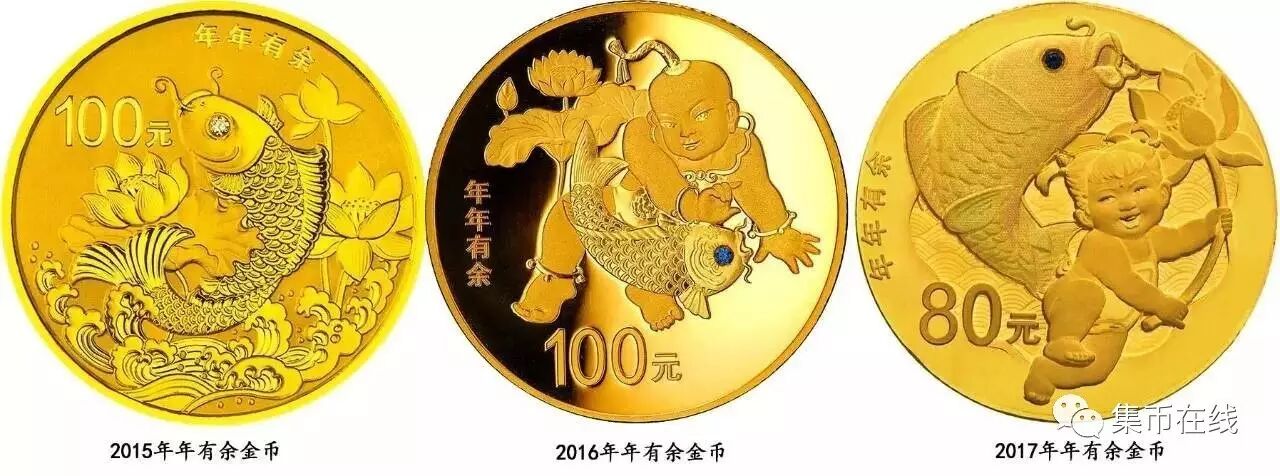“年年有余”更是脍炙人口的传统吉祥文化图案,数千年的中华社会中,年庆喜事之时家家户户都会张贴上一张“年年有余”的吉祥年画。可爱讨喜的胖童子怀抱着大鲤鱼,寄托着父母对孩子鲤鱼跳龙门的美好期望,也寄托着来年家财有余生活富庶的美好期待。就因为每一个中国人都太熟悉了,所以“年年有余”其实是吉祥文化系列金银币中最不好设计的。2017“年年有余”金银币包括5克金币和30克银币,背面图案均为持莲女童、鲤鱼造型,衬以云水纹样组合设计,并刊“年年有余”字样及面额。