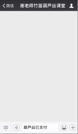 2、付款后一定要记得在[课堂]公众号底部对话框输入“葫芦丝已支付”的消息字样并发送,(需先关注微信公众号)如图所示: