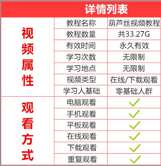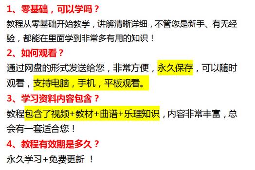 各位亲,小店的教程是史上收集最全,整理最详细的葫芦丝学习资料,高达33.2G!!每一套都是精心挑选的,包含了视频+教材+曲谱+乐理知识等内容,非常丰富,总有一套适合您!!