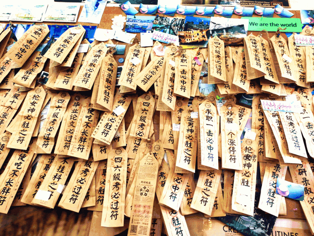 再看看愿望签上的字,都是求4,6级通过,考研考上理想学校的,也有追求女神男神的,特别的可爱!