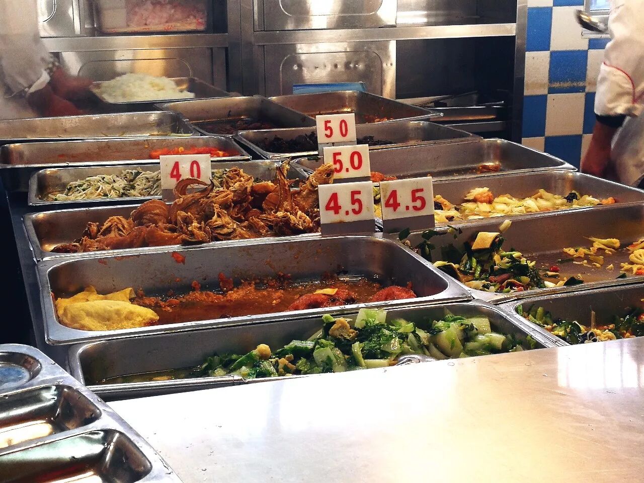 整个长长一条的打菜窗口,每个菜色都标好了价格!看见喜欢吃的,直接拿就好了~