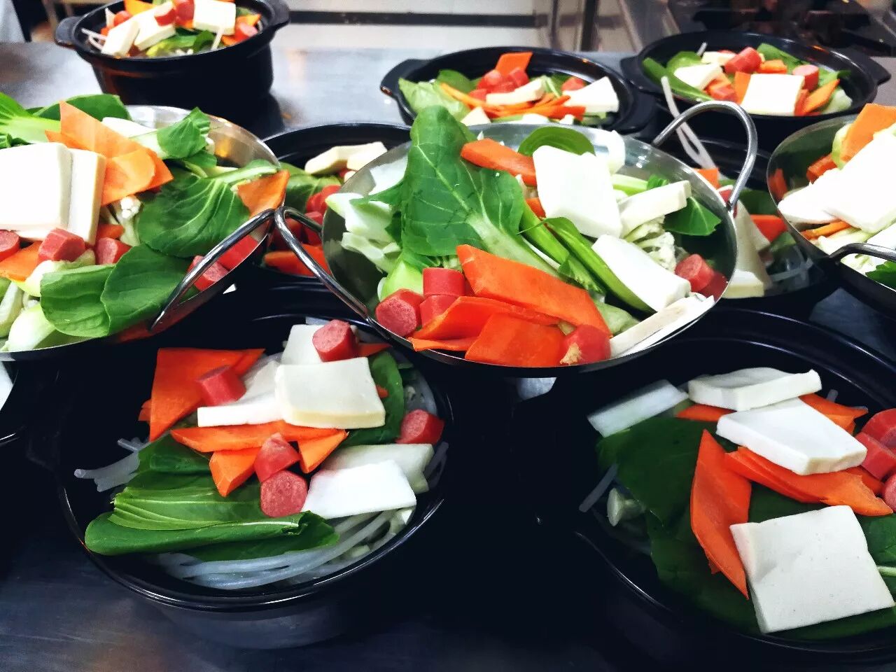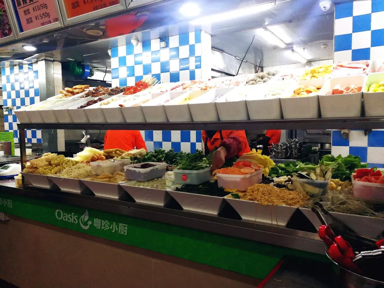 每个食堂总是不能少了麻辣香锅的身影!教工食堂也是一样,摆放好的食材等着华理人来挑选。