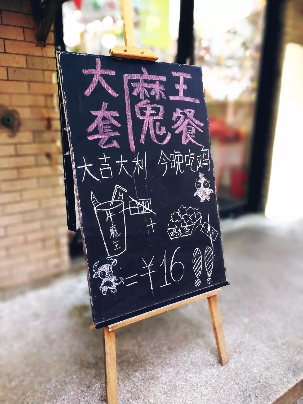 门口的小黑板还推出了大魔王套餐!一杯牛魔王加鸡米花只要16元,超划算!