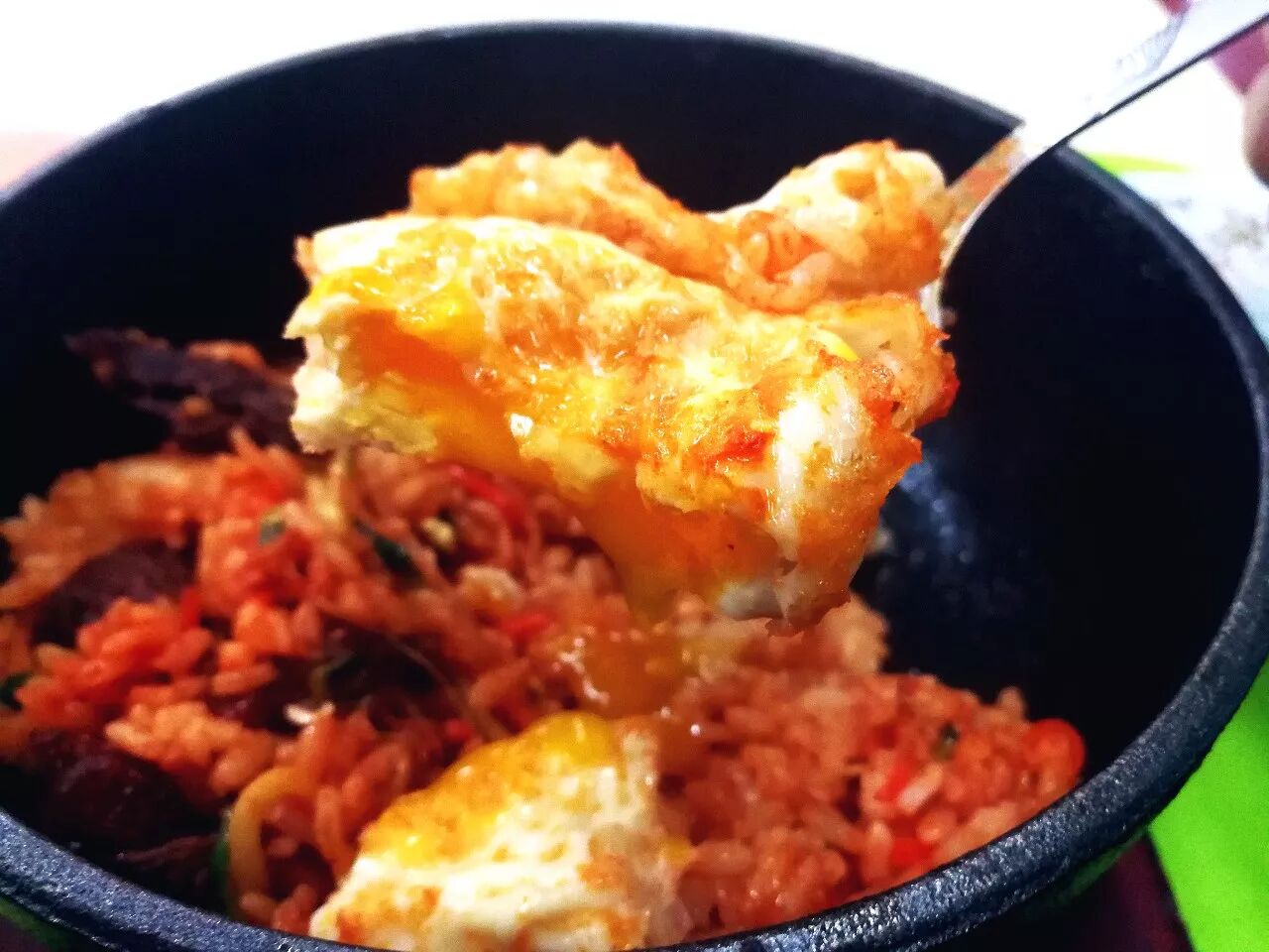 再往旁边走,石锅拌饭的香味简直诱人。灶台上火光四射,石锅里的米饭噼里啪啦作响。那就来一碗石锅拌饭吧~