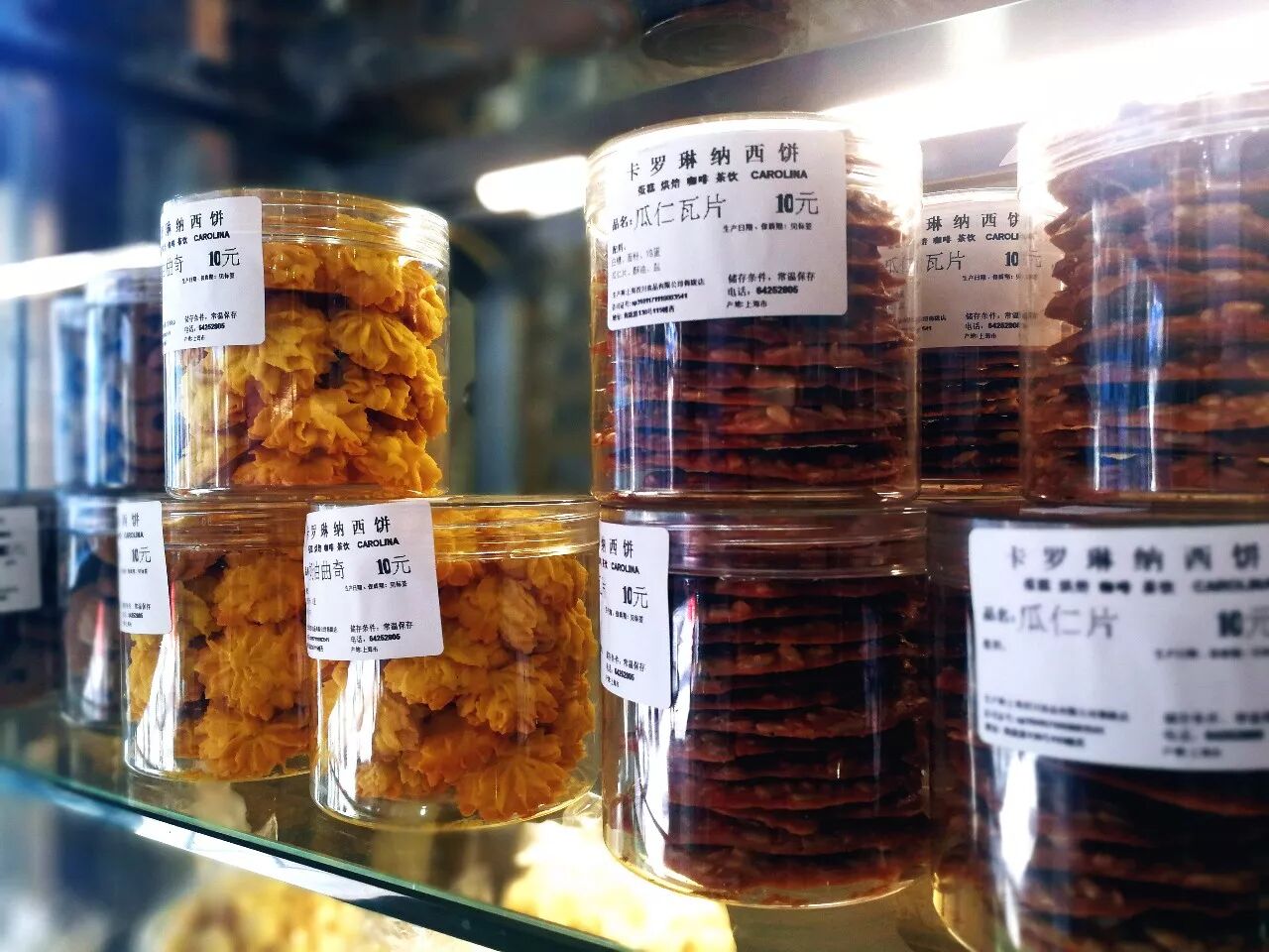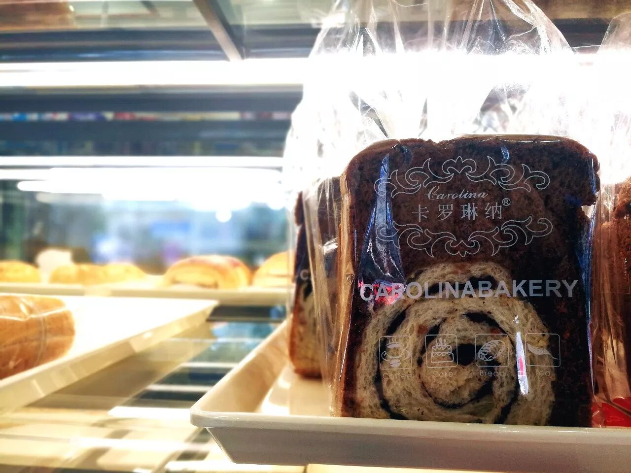 踏着阳光,发现教工食堂旁边有一家面包店,卡罗琳纳!店不大,但是面包蛋糕品种还是比较多的。