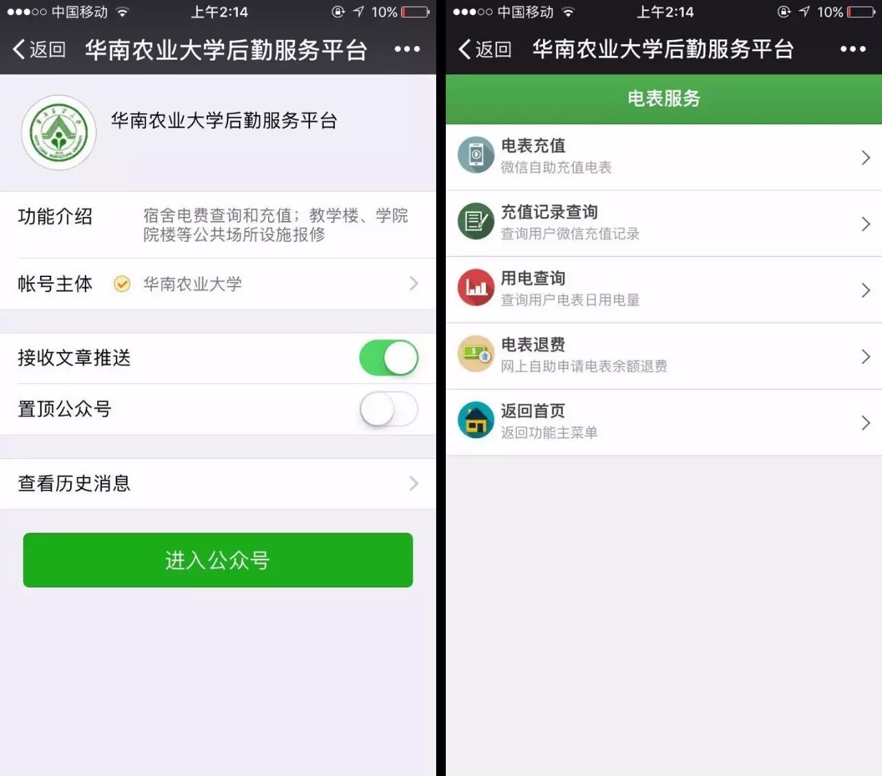 电费缴纳:今年起华农大已经改为微信预存电费啦!大家首先要关注华南农业大学后勤服务平台的公众号→点击后勤服务→用电预付费→进入嗲鸟服务页面,登记信息后就可用通过微信充值电费,当预存电费低于10元时就会有微信消息提示你及时充值电费。大家还可用通过这种方式进行用电查询和电表退费服务呢!