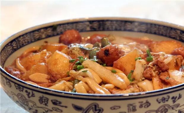大烩菜也可以说是太原的一道特色菜。年前准备的炸丸子、炸土豆、烧肉这时派上用场了,加入白菜、土豆粉等,再放些五台山特产台蘑,连汤带水,用砂锅炖制这么一锅,新年的年菜就用这道菜收尾了。
