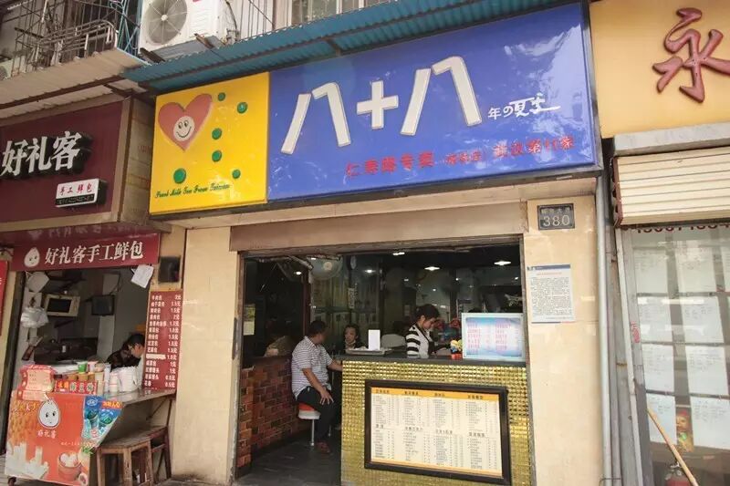 这家奶茶店开了快十六年了,据说其奶茶饮品味道和一般的大店连锁店的味道相当。。坊传:“奶茶配锅盔,好吃又不贵。”