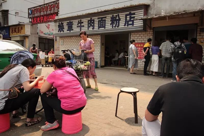 这家牛肉面据说非常有名,然而我没听说过。人气高,一直有人排队,开了十几年的老店,大家都搬个小板凳坐在街边吃。