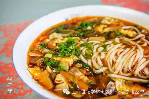 岐山臊子面(又叫岐山一口香)也是一种比较有特色的西府小吃。什么是臊子?臊子就是放入面中的菜,有肉臊子和素臊子之分。肉臊子就是将大肉切丁加姜、花椒、辣椒面等调料煸炒而成;素臊子则将时鲜蔬菜切丁而成。臊子面以肉臊子为主。一碗臊子面,除了臊子之外,底菜、漂菜和浇汤也都有讲究。底菜选淡味菜,如木耳、金针菇、豆腐、四季豆、红萝卜等;漂菜选青菜,如蒜苗、韭菜等;浇汤尤为关键,要达到嗅尝出酸味、舌根有盐味、口里回转有姜味,方算是好汤。臊子面吃起来,让人印象最深的就是由酸辣口味调和而产生的香味。![]()