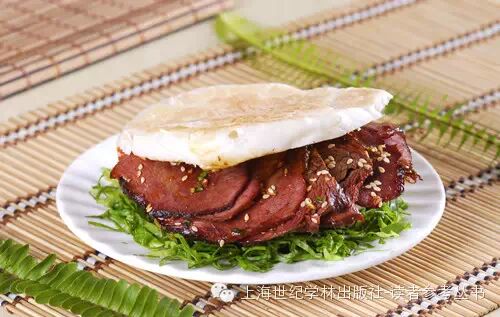 有人奇怪,明明是馍夹肉,为什么叫肉夹馍呢?其实肉夹馍是古汉语“肉夹于馍”的简称,传说源自秦朝大将白起为快速供应战地伙食而作。肉夹馍是两种食物的绝妙组合:腊汁肉和类似烧饼的白吉馍,两者合为一体,互为烘托,将各自滋味发挥到极致,馍香肉酥,令人回味无穷。