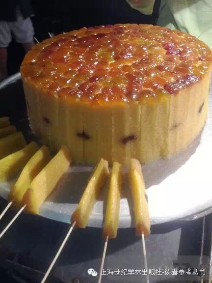 在鼓楼曾听过一个夸说回民食品的快板段子,叫《长安回坊美食赞》,这里摘取几句:“勤劳智慧回族人,饮食文化尤璀璨。羊肉泡馍海碗端,肉嫩汤鲜上国宴。腊牛羊肉传佳话,慈禧辇止闻香馋。牛肉丸子糊辣汤,占尽风流属名馔。灌汤包子多味饺,匠心独具菜肉馅。麻什卤面菠菜面,荤素清爽家常饭。卤汁凉粉麻酱皮,四季飘香人垂涎。蜂蜜凉粽热糍糕,豆黄豆糕甑糕绵……”快板中提到的回坊美食不下百余种,这里重点介绍一下甑糕和腊牛羊肉。