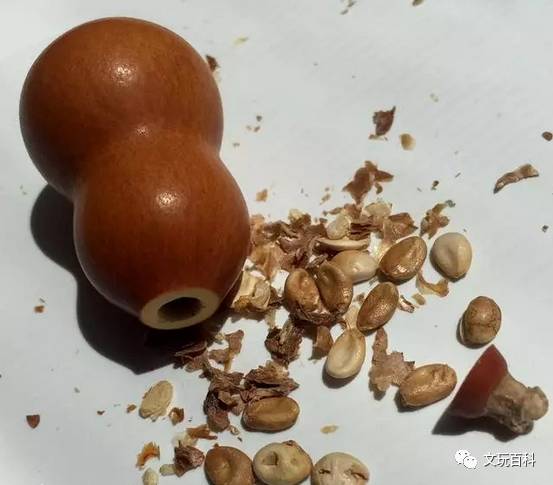 ➌打孔,把葫芦籽掏出来,籽放了这几年干透都还这么饱满,成熟度没问题。