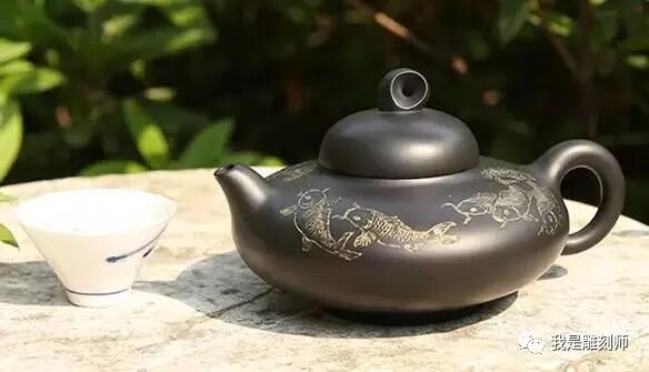 后经清代壶艺名家邵大亨改进,制成了活动龙首纽、龙尾把、卷浪波涛、鱼龙堆身的紫砂壶。