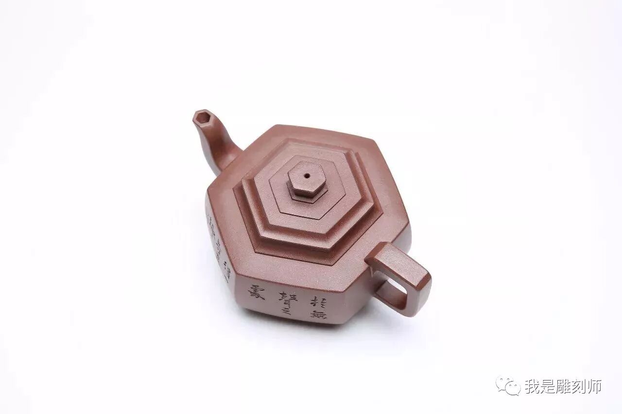 造型以直线作为主,从壶底,壶身直到摘手,用了大小比例合度的六方形块面分层组合,突出六方形的横直线条的魅力。