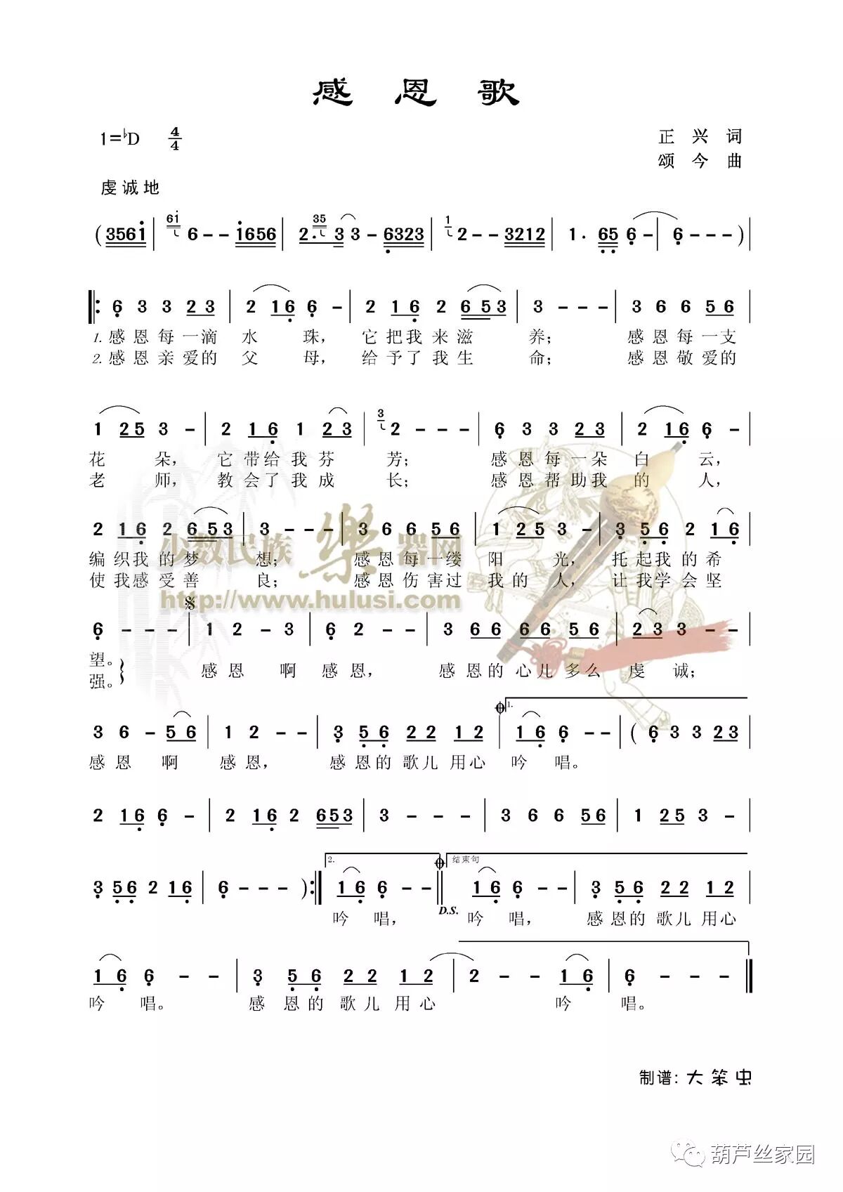 感恩亲爱的父母, 给予了我生命。感恩敬爱的老师, 教会了我成长。感恩帮助过我的人, 使我感受善良。感恩伤害过我的人, 让我学会坚强。葫芦丝《感恩歌》音频