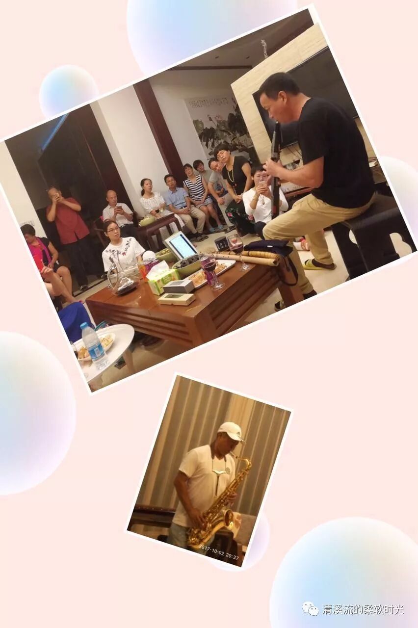还有和唱声、Cheers欢呼声、萨克斯声、葫芦丝声……黄岩朋友电萨克斯《人间第一情》、萨克斯独奏《城里的月光》、《月亮代表我的心》、 葫芦丝独奏《梁祝化蝶》、笛子和葫芦丝合奏的《月光下的凤尾竹》,萨克斯那高亢金属音色、葫芦丝的优雅、悠然。从具有三千多年历史文化的传统乐器穿越到充满时代感的西洋乐器,唯美、恢弘,水乳交融,妙不可言,动人心扉。