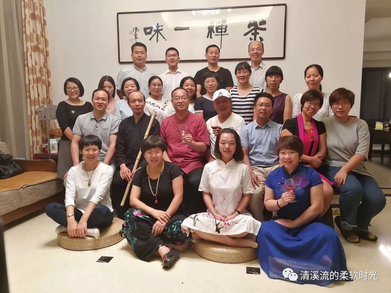 文人雅士已至,或坐或立或饮或品或吹或拉或吟或和月亮合影……醉心,陶然不知微雨至。