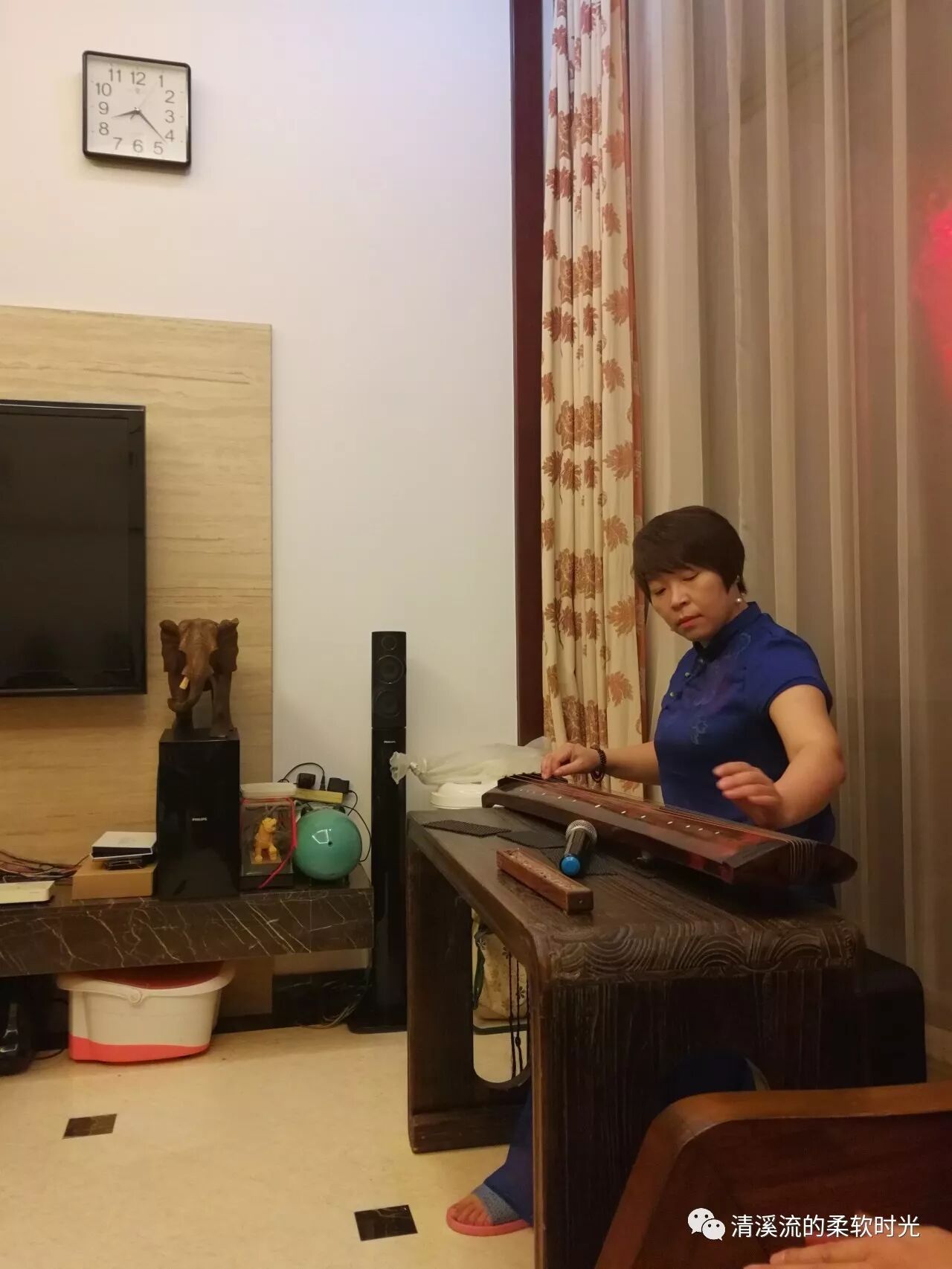 好沁心的独奏!但见陈老师微闭双眼,轻抚七弦,琴声流畅且圆润、优雅且细腻,韵味悠长。泠泠七弦音,清辉一轮满,恰如其分的。