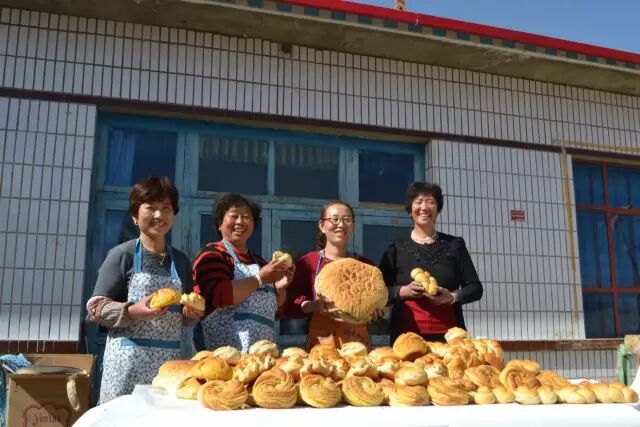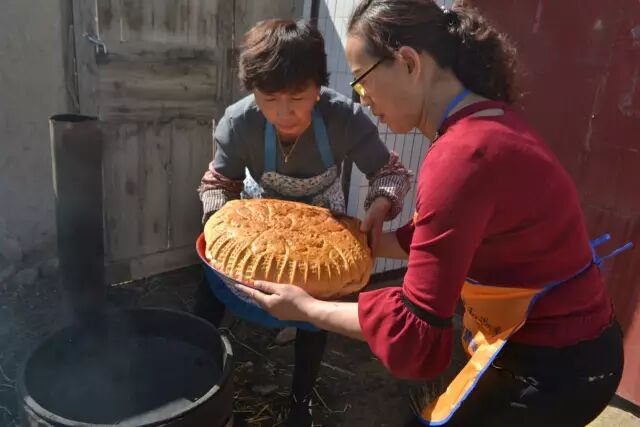 这些移民尽管日子算不上富足,但在“吃”的方面却并不将就(很认真),有人说“安西的风、吐鲁番的热、巴里坤的冷”是西域“三绝”,巴里坤的冷就是其中之一。巴里坤由于地理环境和生产工具制约,有时麦子还没熟就被压在雪地了,等收回的麦子磨出面做出面食又黏呥(ran)又难咽,就这样收的粮食还不够用。巴里坤的巧媳妇为了给自己家的娃和汉子填饱肚子改善口感,想到巴里坤就是牛羊遍地,不缺不稀罕,巧媳妇们在和面、发面时加入牛奶,再集各地面食做法的精华,再加入当地产的一种植物香料香豆子粉,把本来不好的庘(ya)面三捯饬(dao ci)两捯饬繁复揉搓,做出花样,放在一种从口里(内地)叫鏊子的面食加工器具里,以麦草为燃料用古老的烧烤方法加工出香脆可口的大饼,因为沿用了古老的制作工艺所有起名锅盔。这不仅在日常生活中仍保留着本乡本土的饮食习惯,而且将饮食习俗与节日习俗紧密相连,在抒发浓浓的思乡之情的同时,也使得家乡的饮食文化这里变异、创新、传承,逐步形成了具有巴里坤特色的当地汉族面食,并具有鲜明的地域性特色。巴里坤锅盔有三大特点:一是更大更厚,二是口味多样化,三是更耐保存。![]()