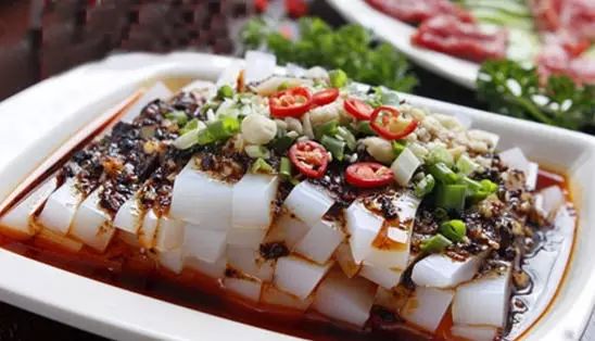 川北凉粉是四川南充的著名小吃,创始自清末南充县江村坝农民谢天禄,他在渡口搭棚卖凉粉,以其独具口味流传全四川。川北凉粉是采用优质豌豆去壳,用水浸泡后,磨成细浆,然后过滤去渣,沉淀脱水,制成豆粉。再经加热搅拌成糊状,装入盆、盘待用。川北凉粉调料有凉粉皮、黄瓜、辣椒油,花椒粉、酱油、盐、糖、味精、豆豉、大蒜、麻油及香菜。