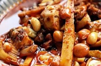凉拌肺片、五香蹄筋等多种凉菜。吃二姐兔丁,第一先吃的一定是脆脆的花仁,然后是兔子,最后是葱头。