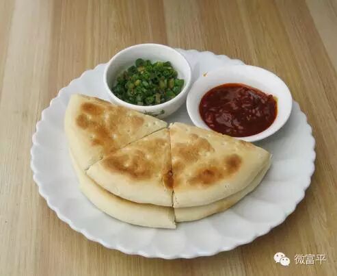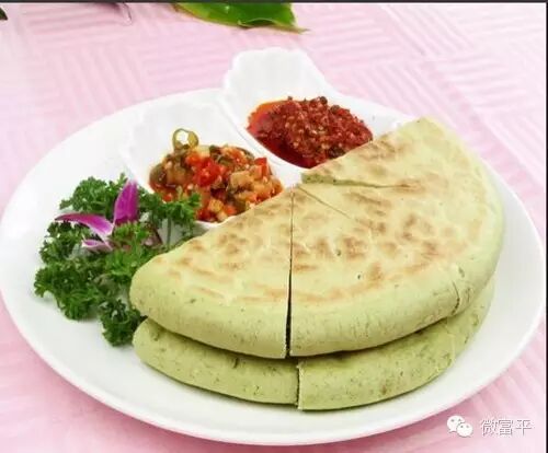 在富平,几乎每个大酒店都有锅盔这道名吃。尤其是刚刚烙出的热锅盔,夹上炒的绿辣子,或者红红的辣子酱,或者咸菜,哪怕没其他凉菜、热菜,也能吃得有滋有味。