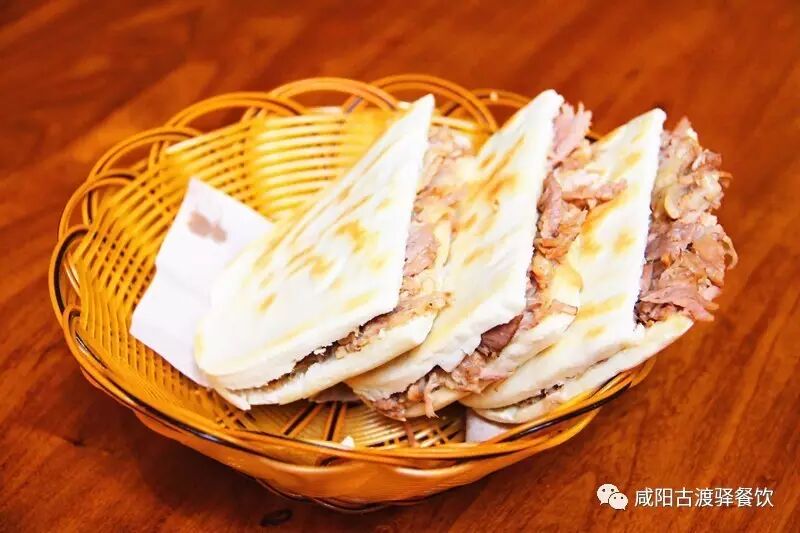 锅盔牙子是陕西咸阳特有的地方名小吃,它实际上和肉夹馍有异曲同工之效,但是馍更小,更脆。锅盔牙子选上等麦面粉和死面(不经发酵),揉压成马蹄状(形似荷叶饼,厚不过一分),上碳火炉烘烤,至表皮酥黄,内里熟透,横面切开,夹入秘汁卤肉。其肉肥而不腻,瘦不柴,夹入饼中,咬一口酥脆溢香,肉入口即化,夹齿留香,回味无穷,堪称一绝。