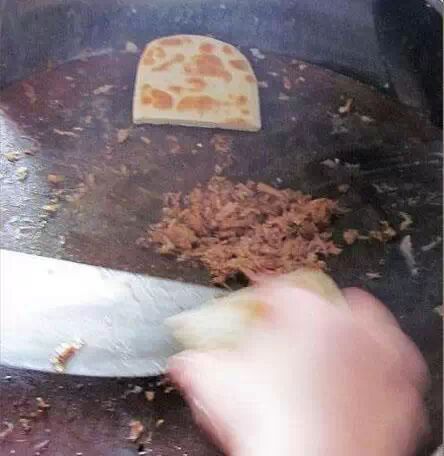咸阳的锅盔牙子肉夹馍,已有三百来年的历史,明末清初已十分盛行。